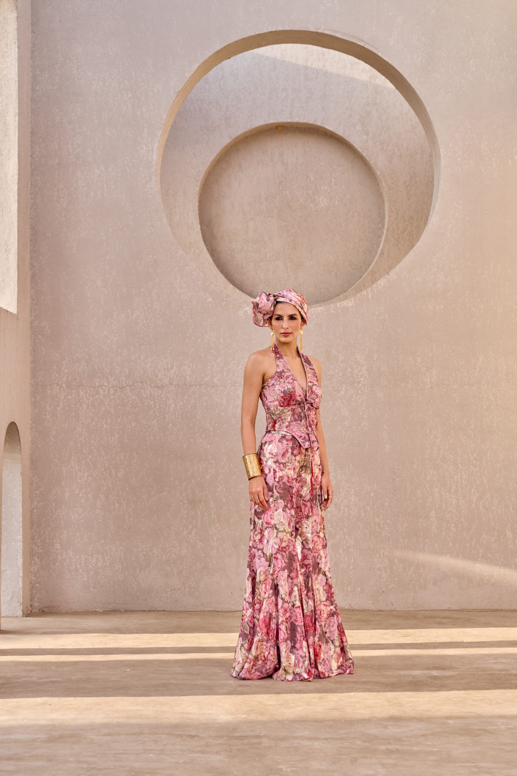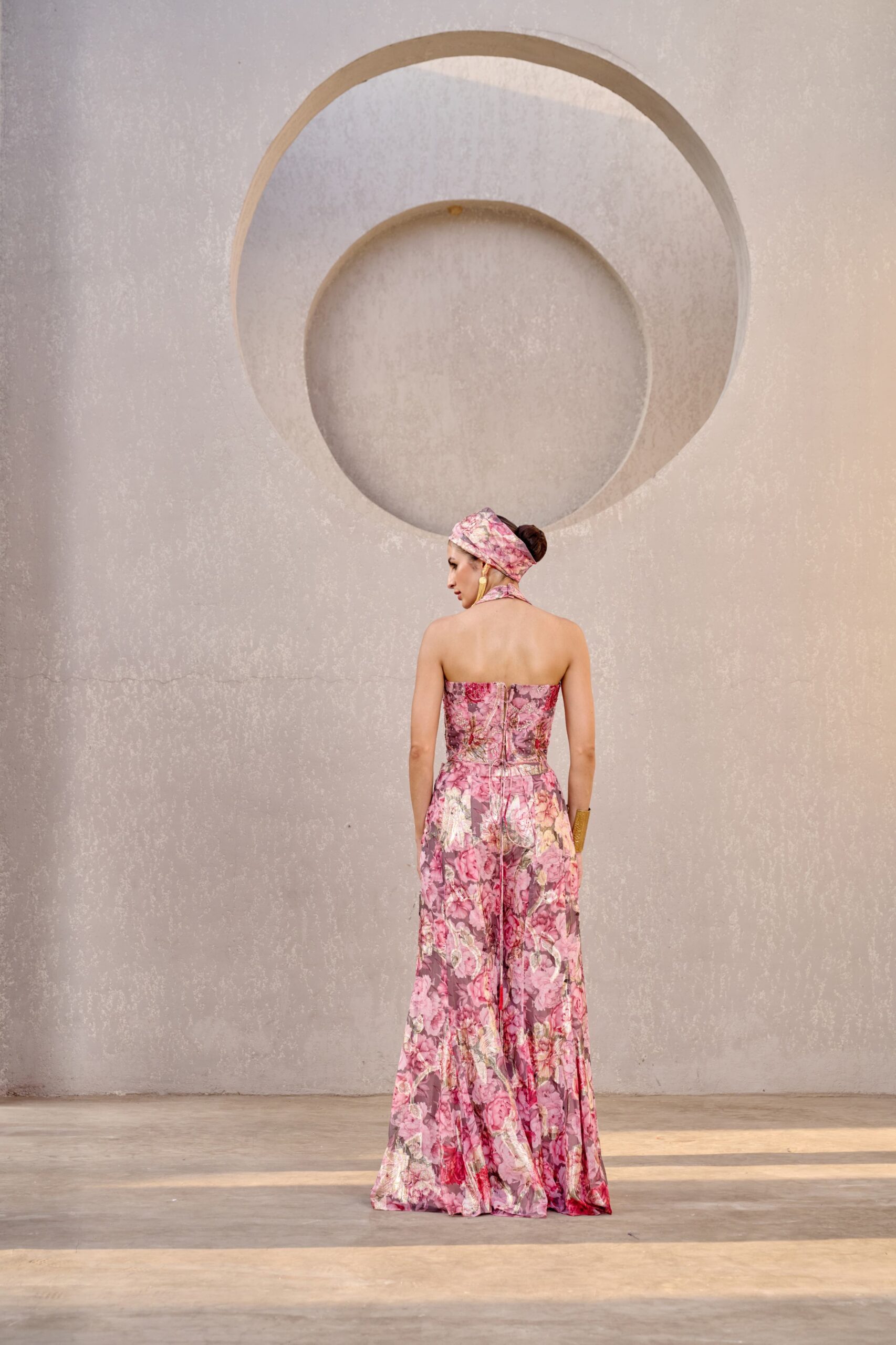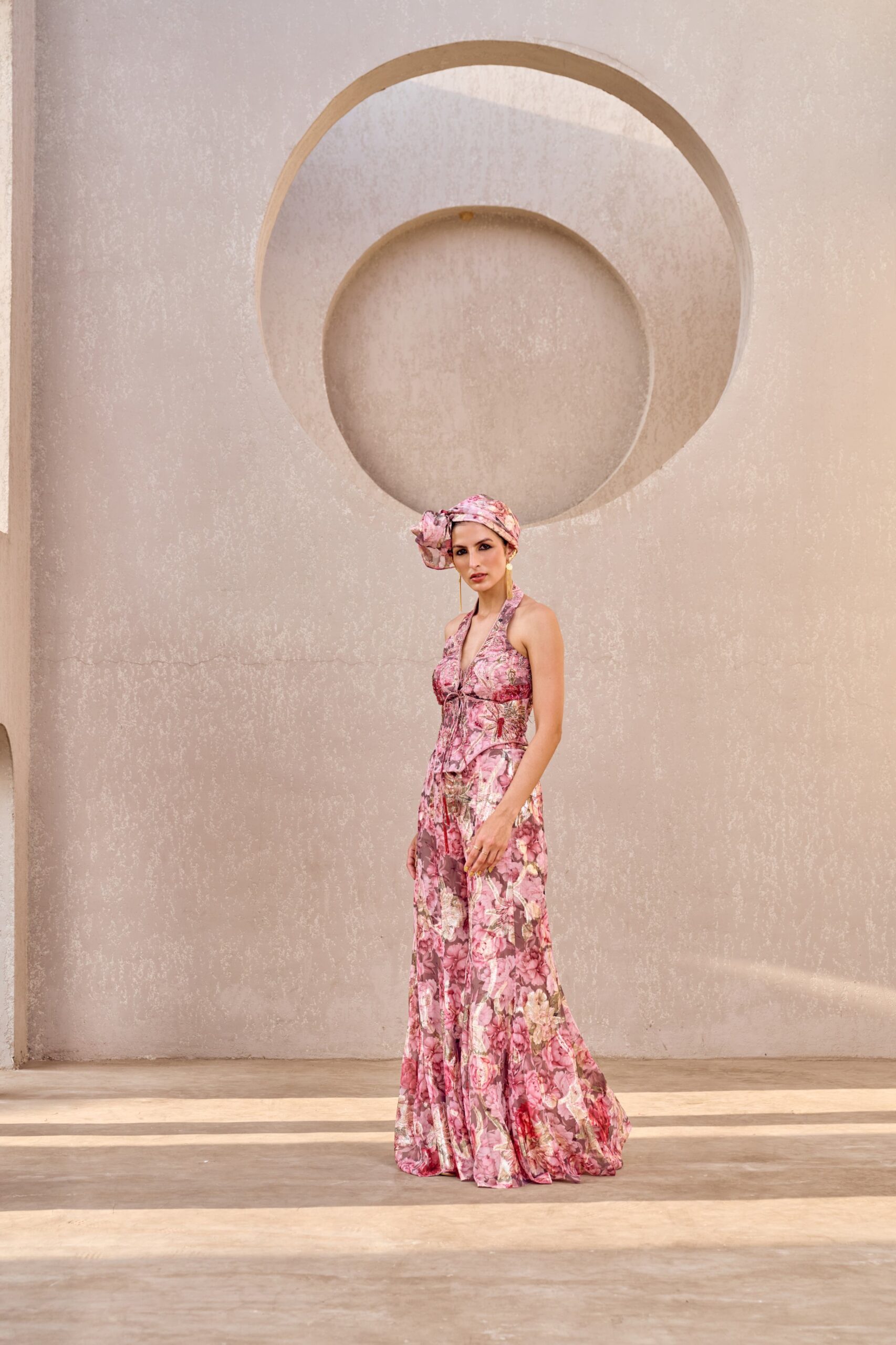 Step out in elegance with our pink hand-embroidered corset Sharara set, crafted with intricate detailing for a graceful and contemporary look. Available on order in any size and any color.