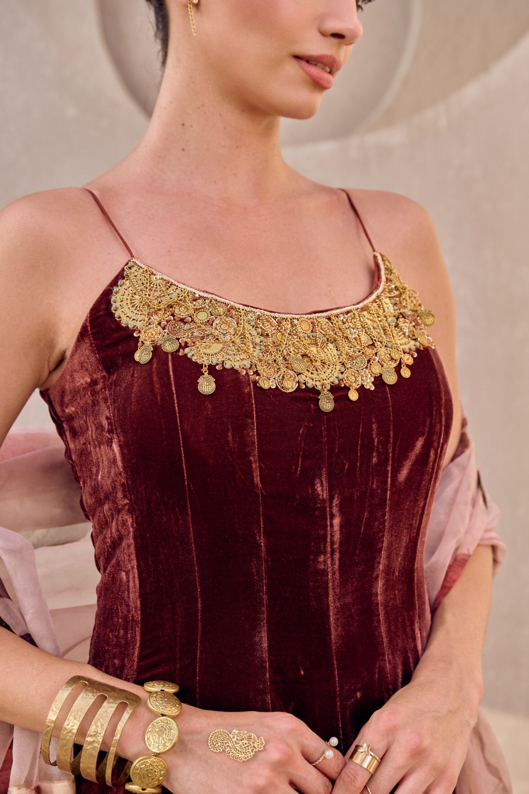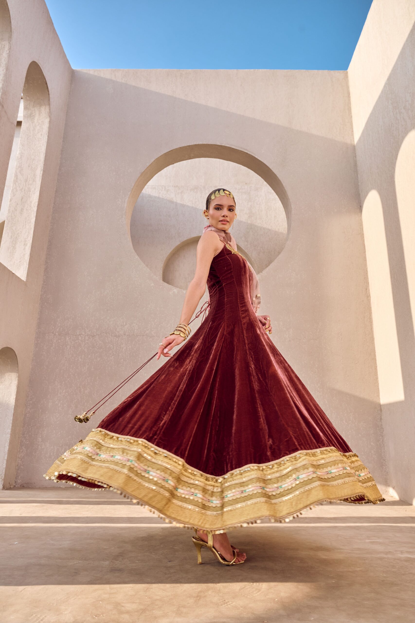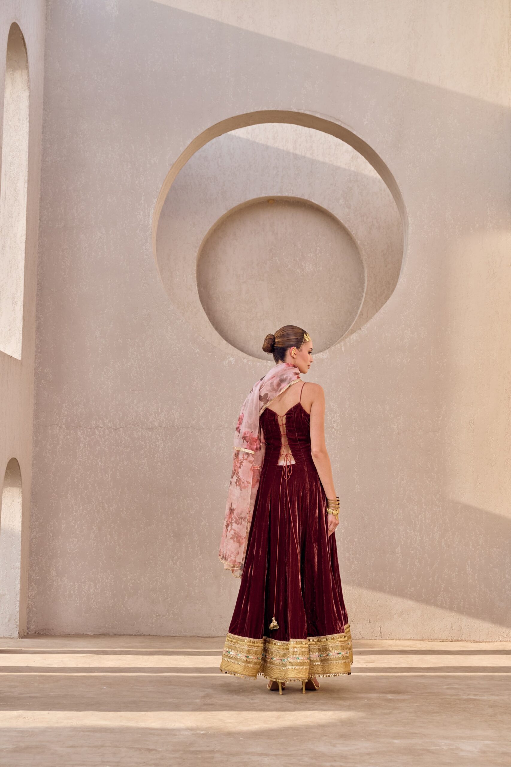 Make a statement with our rust red hand-embroidered corset body Anarkali set, meticulously crafted to exude elegance and contemporary charm. Available on order in any size and any color, tailored perfectly to your style.